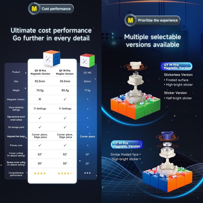 Kancharo QY M Pro Maglev Version, Black, Japanese Cube Strategy & Pouch Included, Magnetic, Competition Cube, Stickerless, Maglev Version