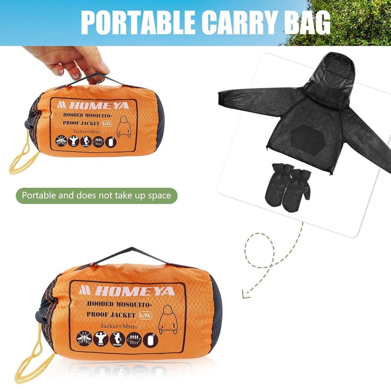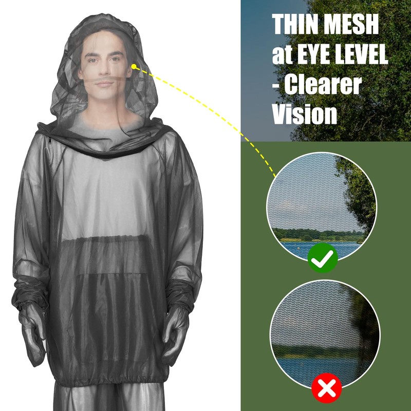 - 1. Complete Bug Protection with Hood & Gloves Our bug jacket features a full-coverage hood and included gloves to protect against mosquitoes, no-see-ums, and other pests. The neck zipper allows easy access for eating/drinking without compromising protection.