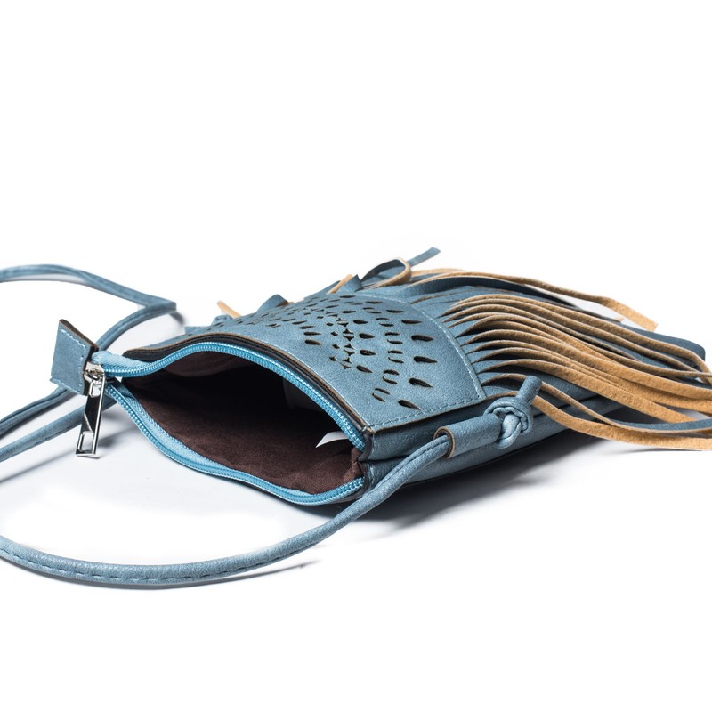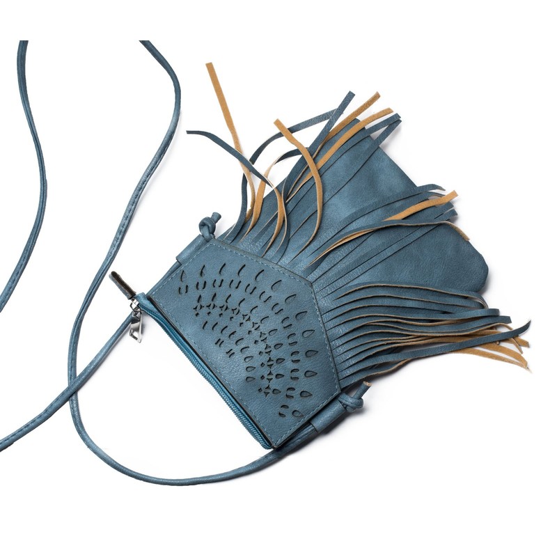 Kandharis GB-11 Women's Shoulder Bag Mini Bag Ethnic CrossOver Bag with Fringe Geometric CutOut Pattern, M2-anthracite