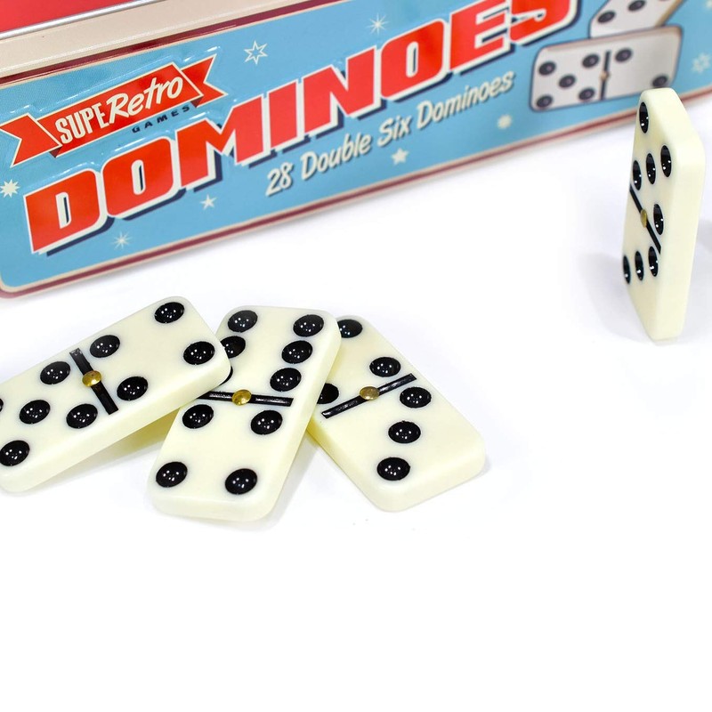 - True Classic - The SupeRetro set of 28 high quality double six dominoes set is a timeless game.