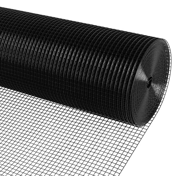KANERS Black Vinyl Coated Hardware Cloth 1/2 Inch 48inx100.1ft 19 Gauge, Welded Wire Fencing Chicken Wire Mesh Roll Cage Wire Netting