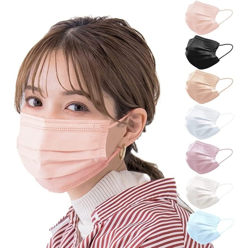 [KANEYAMA] カラーマスク マスクプリーツマスク 血色マスク 不織布 ふつうサイズ 小さめサイズ(小顔) 子供サイズ 使い捨てマスク やわらかマスク 50+1枚 (普通サイズ, ベビーピンク)
