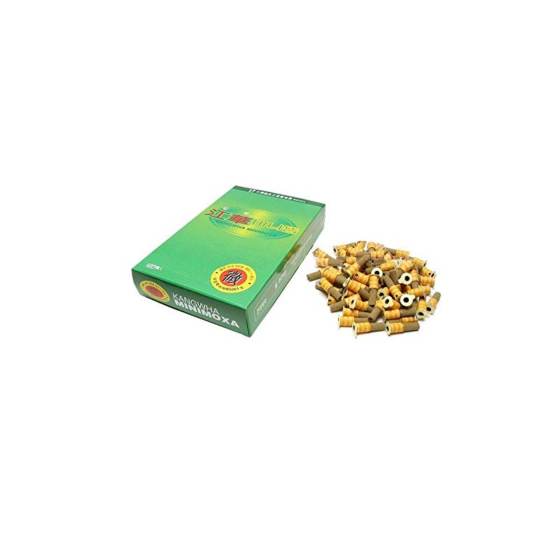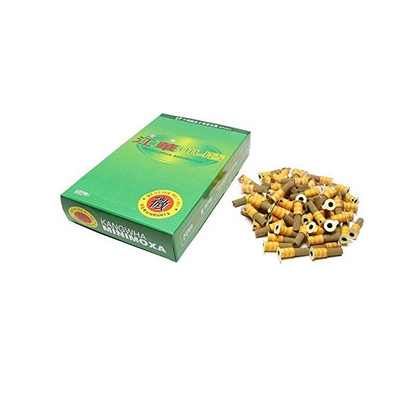 * 40C(104F) ~ 45C(113F) * * 180 pcs / Box Directions: 1. Remove the sticker underneath the moxa. 2. Place it on the area to be treated. 3. Light it with a moxa lighter. 4. Wait for complete combustioin and repeat the process several times. Safety Information: -If too hot, grab the stick on mini moxa with forceps and place it on another area. *NOTE: Do not use on the face, soft skin, or other sensitive body parts. Do not use on pregnant women or people who are unable to detect the sensations of heat or pain. . Do not leave in one place for an extended period of time. If the heat becomes uncomfortable, remove immediately. Be cautious when touching the moxa - extensive heat. Keep moxa out of reach of children. DO NOT fall asleep during use. Handle with care. The user/purchaser accepts full responsibility for any accidents caused by improper use of the product.