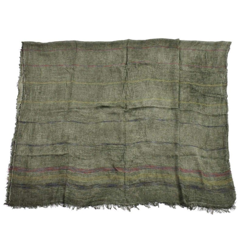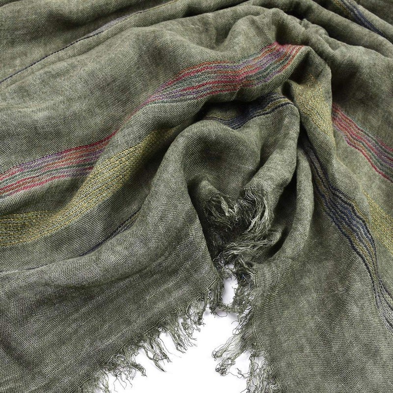 Kangqifen Kangqifen Unisex Striped Soft Scarf Cotton Linen Lightweight Large Scarves 75 x 35 inches ArmyGreen