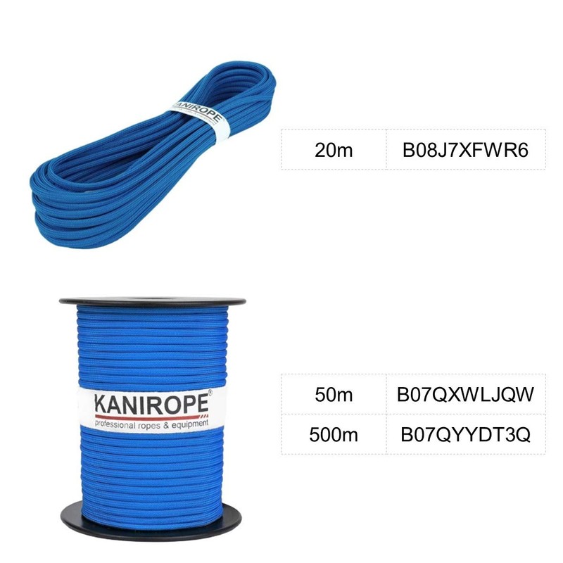 - Diameter: 3.8 mm, length: sold by the metre (running meter), 50 m spool, 500 m spool, type: 32-ply braided, rope core: 8 twisted threads, breaking load: 550 lbs / 249 daN (kg), weight: 0.74 kg/100 m.