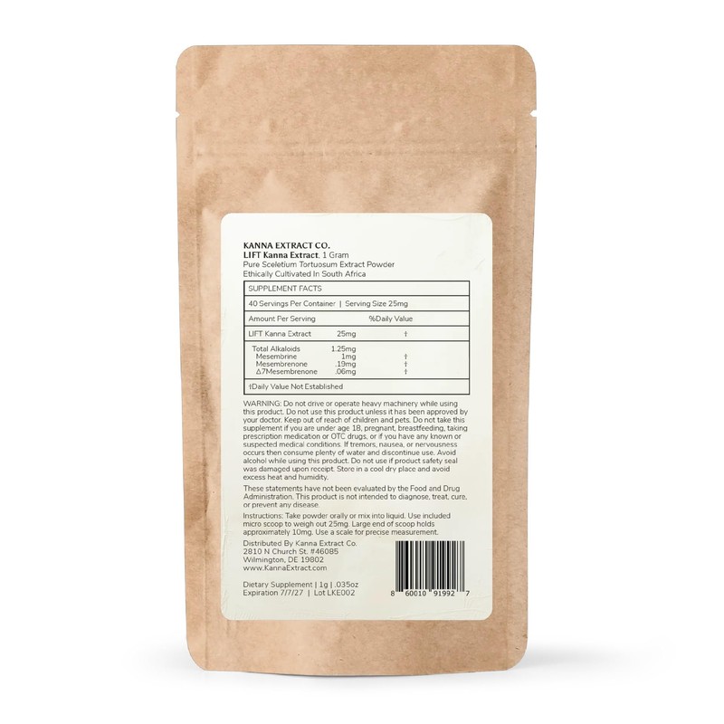 Kanna Extract Co. Lift Kanna Extract Powder | 5% Alkaloids, 80% Mesembrine | Sceletium Tortuosum | Lab Tested & Ethically Sourced | 1g - 40 Servings