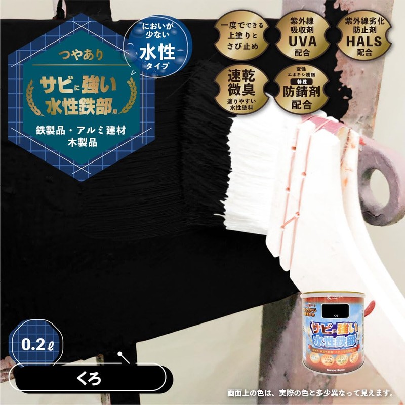 • [Features] [Can be applied directly over rust] The special anti-rust agent provides a strong rust effect and can be used to prevent rust and coat at the same time. ■[UV & anti-aging agent formula] UV absorbers (UVA) and UV degradation inhibitors (HALS) help prevent the coating film from deteriorating due to UV rays for a long time. ■[Best class of water-based paint, high rust resistance and durable] The ultra-fine particles "Denatured Epoxy Resin" form a precise and strong paint film. High performance iron paint that can be applied directly over rust with high rust resistance and high durability. ■ [Easy to paint] This water-based paint has low odor, dries quickly, and is easy to apply. ■[Excellent weather resistance! Denatured epoxy resin with special anti-rust agent