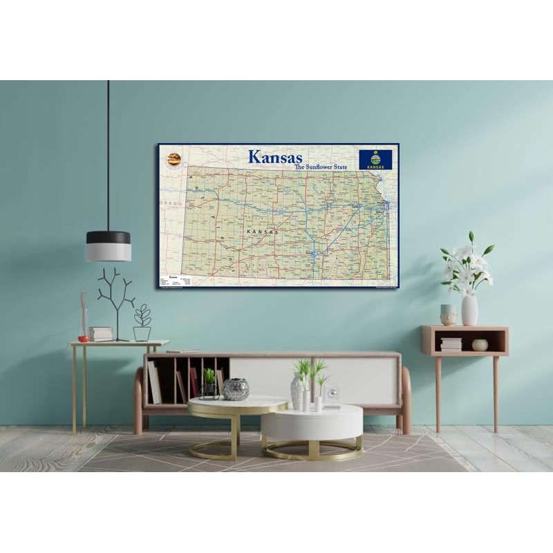Kansas State Physical Poster Map - 16.5 x 27.5 Inches - Paper Laminated