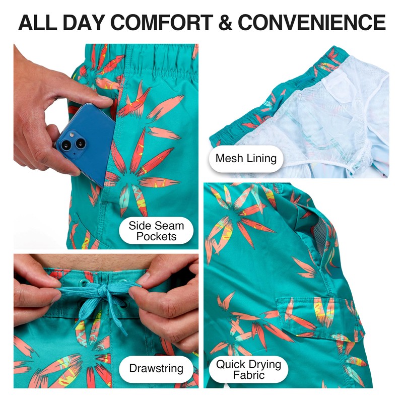 - Quick Drying Fabric: Our swimming trunks for men feature lightweight and durable microfiber fabric that dries quickly, ensuring all-day comfort whether you're swimming or lounging.