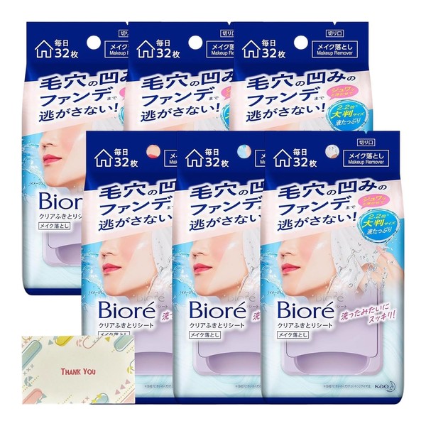 Kao Biore Clear Wiping Sheet Makeup Remover Sheet Set of 6 + Kunutonn Original Logo e Bonus