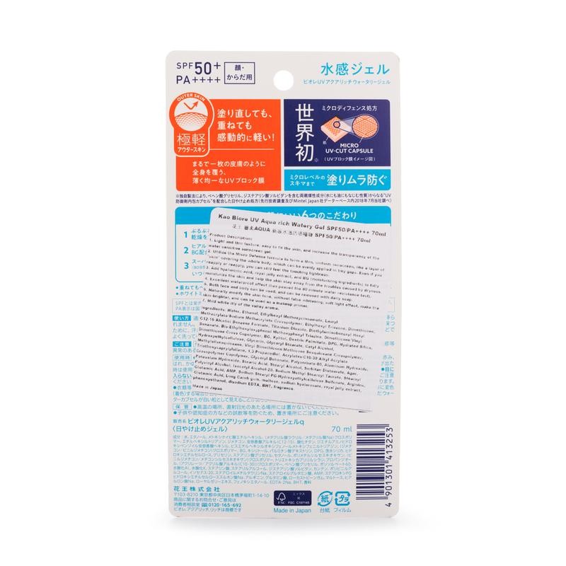 Kao Biore UV Aqua Rich Watery Essence Sunscreen 70g | Lightweight, Fast-Absorbing SPF Protection | Hydrating, Non-Greasy, Daily Sun Care