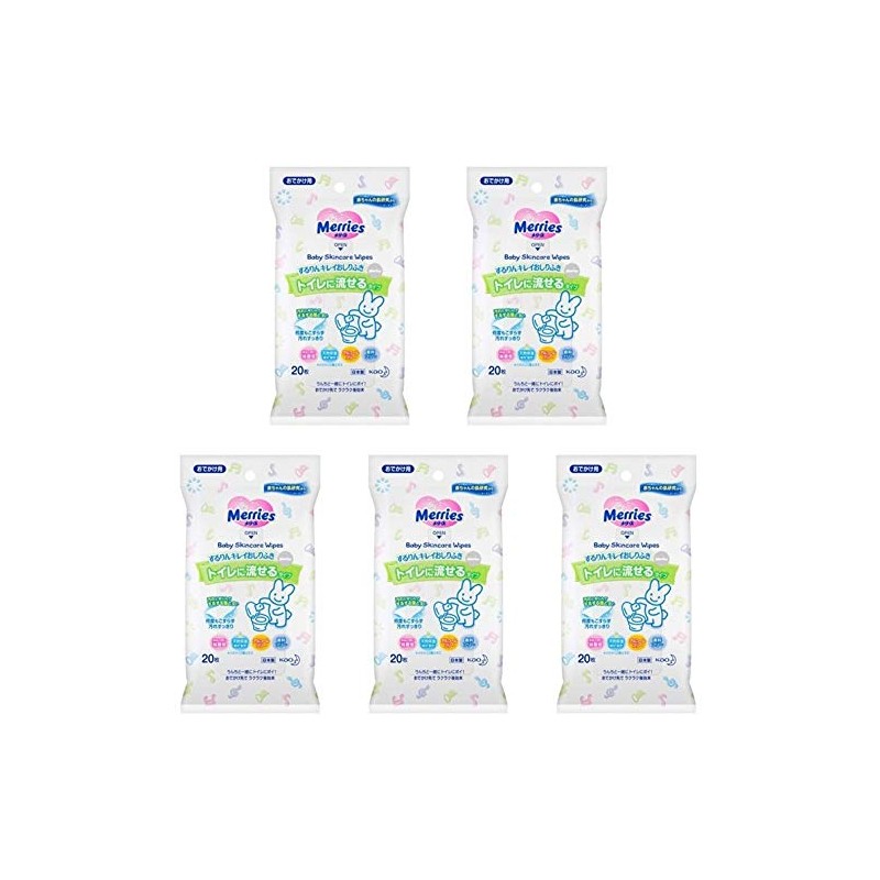 Kao Merries Clean Flushable Wipes for Going Out, 20 Sheets x 5 Set