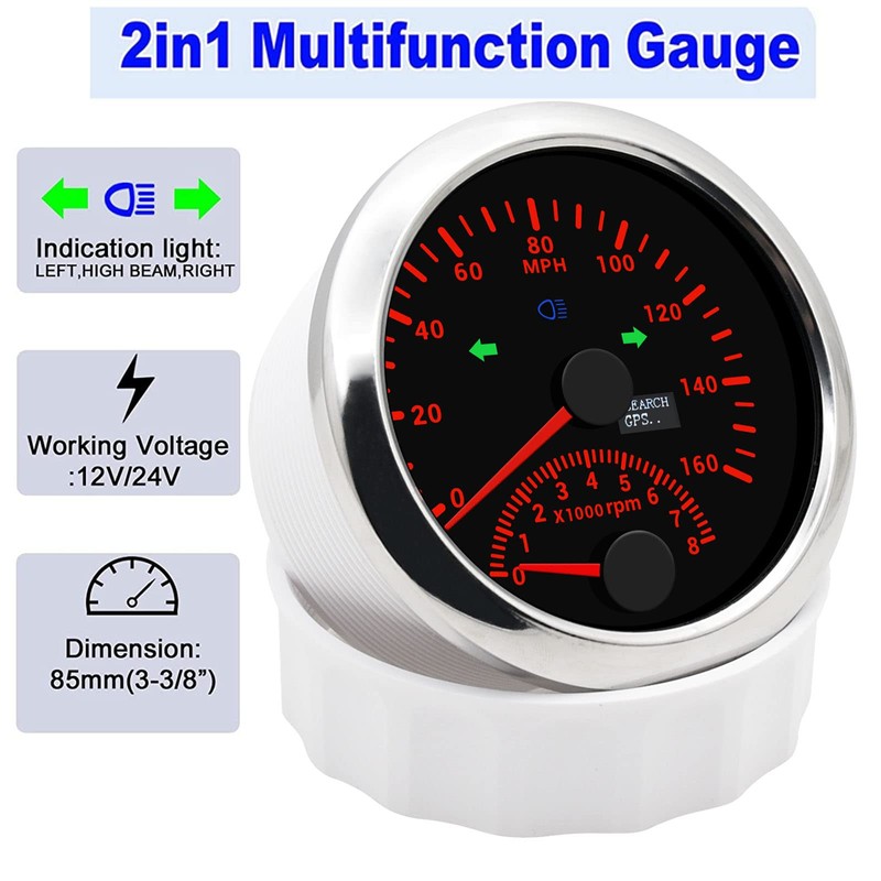 - Universal speedometer gauge fit for all car, boats, truck, motorcycle, and off-road vehicles. The signal comes directly from the satellite signal receiver(GPS Antenna), don't need other speed sensor.