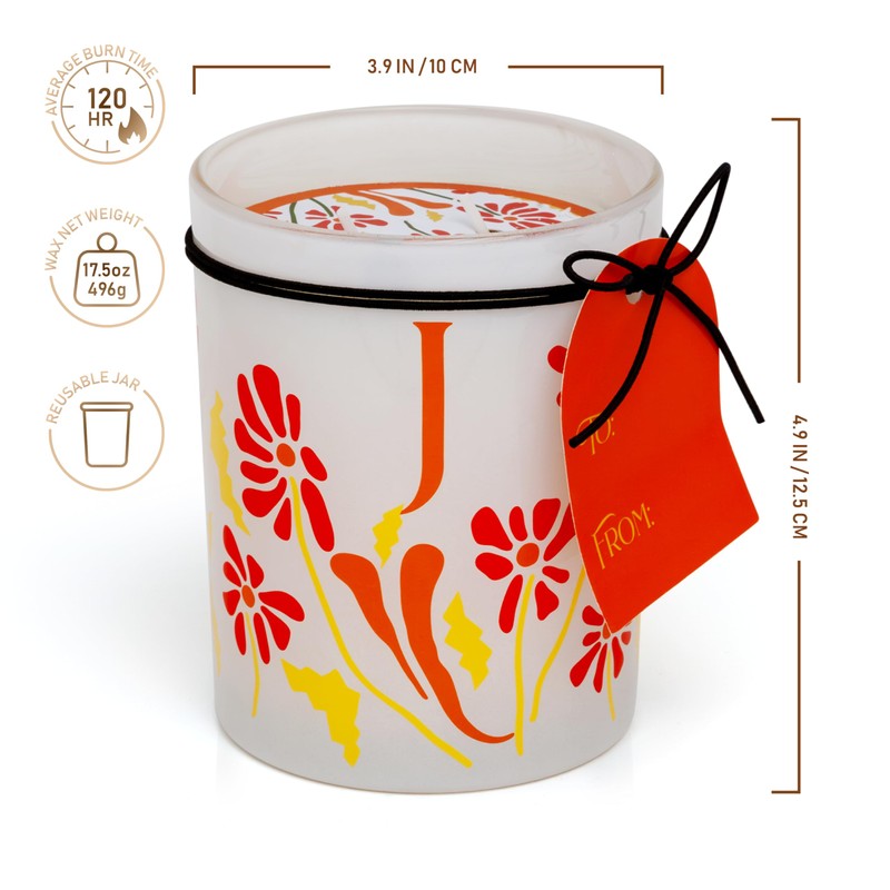 KAORI Scented Classic 17.5oz Large Tumbler Candle โ Dual Wicks, 110-Hour Burn Time, Perfect for Relaxation & Holiday Gifting (Pink Peony, Letter J)