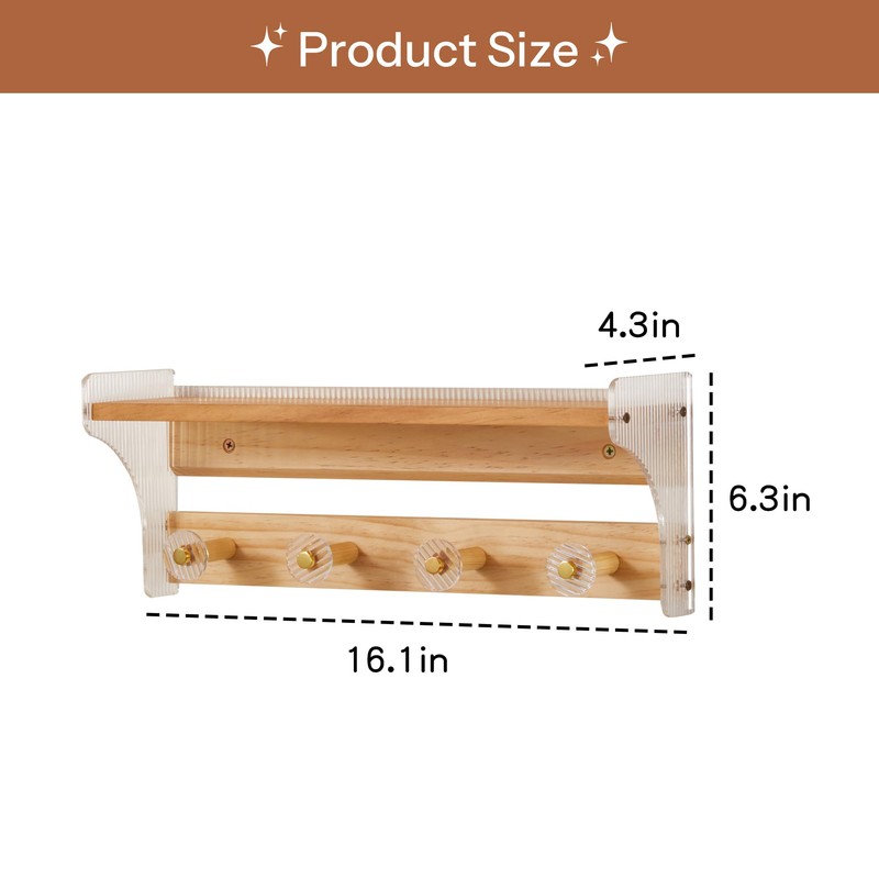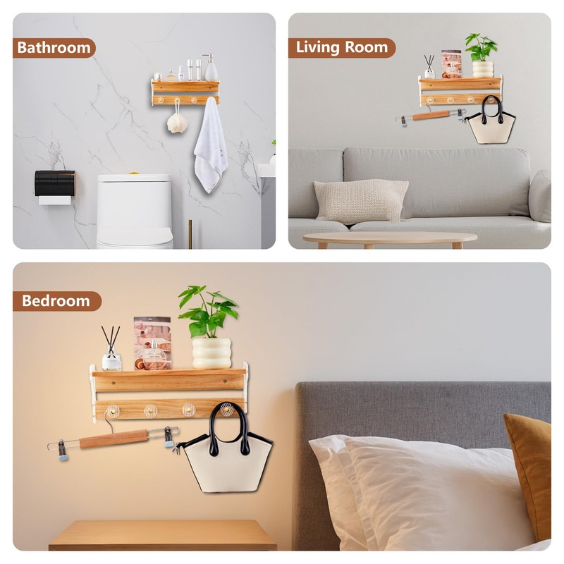 - Hooks Design: 4 hooks at the bottom of each floating ledge, you can hang your keys/bag etc.