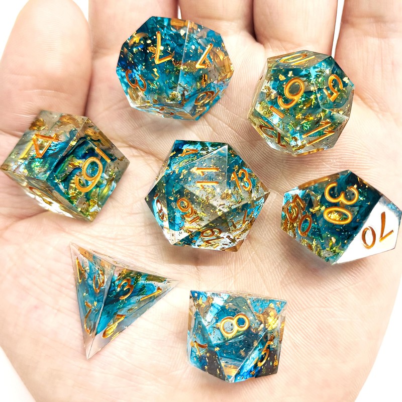- Polished edges: Each side of the dungeons and dragons cube has been polished by hand with care, so it has a reflective effect. Each cube in the DND cube set is made of two fused colours and creates different colour effects due to refraction under different lighting conditions, which looks very cool.