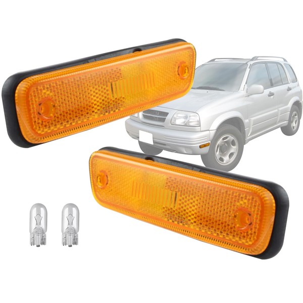 KAP Replacement for Front Bumper Halogen Side Marker Lights 1995-2005 Grand Vitara 2001-2003 XL-7 with Bulb 3651065D01 3652065D01 SZ2551101 SZ2550101 PAIR