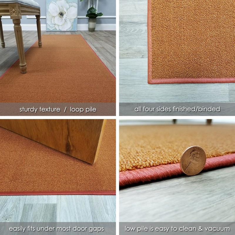 Kapaqua Custom Size Burnt-Orange Solid Plain Rubber Backed Non-Slip Hallway Stair Runner Rug Carpet 22 inch Wide Choose Your Length 22in X 5ft