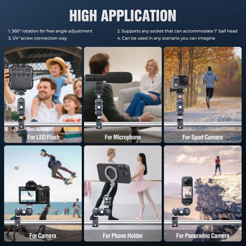 - 360° Rotation: The ball head and U-bolt base of this product kit can be freely rotated 360 degrees, adjusting the Angle to your satisfaction and enjoying a wide riding view