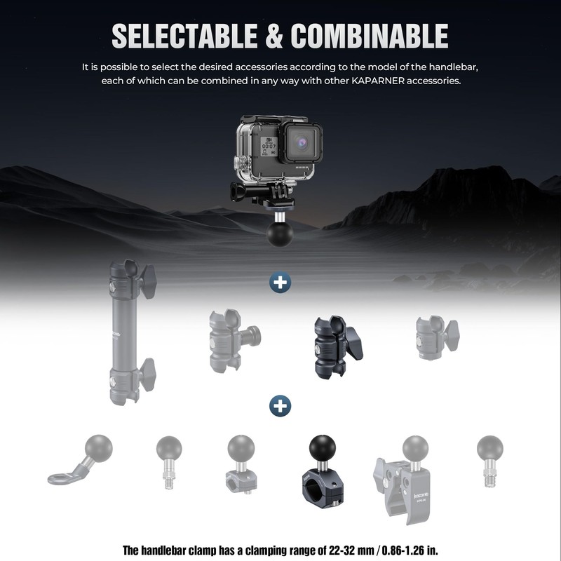 KAPARNER Riding Camera Holder with 1/4" Thread Ball Adapter, Adjustable Dual Socket Arm and Aluminum Handlebar Clamp U-Bolt Base for ATV/Scooter/Bike Handlebar (KCB-2)