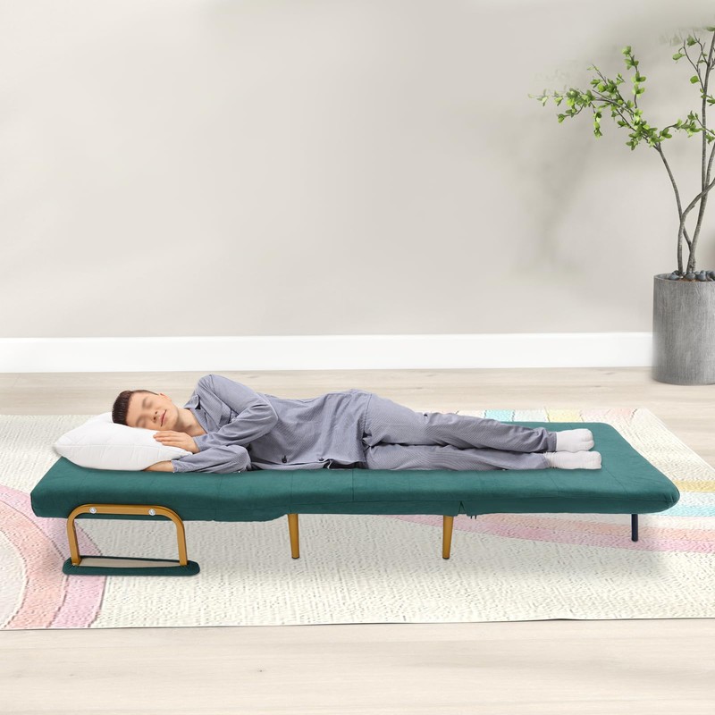 Kaponbon Convertible Folding Sofa Bed, 4 in 1 Multi-Function Living Room Reading Chair with Pillow & Arm & Adjustable Backrest, Foldable Sofa Chair Bed for Home Office Yard Camping (Green)