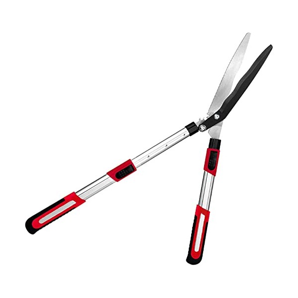 Kapoo Adjustable Hedge Shears, 26-34 Inch for Shaping Hedges, Decorative Shrubs, with 9 Inch Wavy Blades and Double-Teflon Coating, for Trimming Borders and Bushes ba02, Red