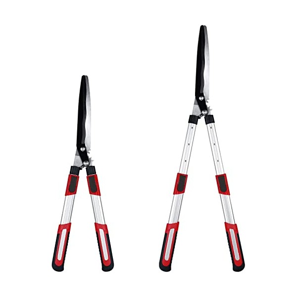 Kapoo Adjustable Hedge Shears, 26-34 Inch for Shaping Hedges, with 9 Inch Wavy Blades and Double-Teflon Coating, for Trimming Borders, Boxwood, and Bushes ba08,Red