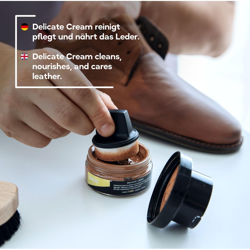 Give your leather shoes a new shine and radiant colour with Kaps Delicate Cream.