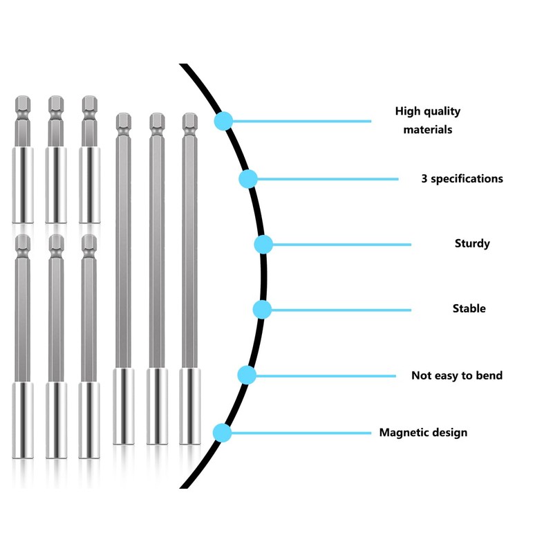 - [Magnetic Design]:These drill bit extensions adopt a magnetic design that firmly holds screws and drills, ensuring stable operation. Thanks to the magnetic function, you can easily insert and pull out screws or drills, making your work more efficient.
