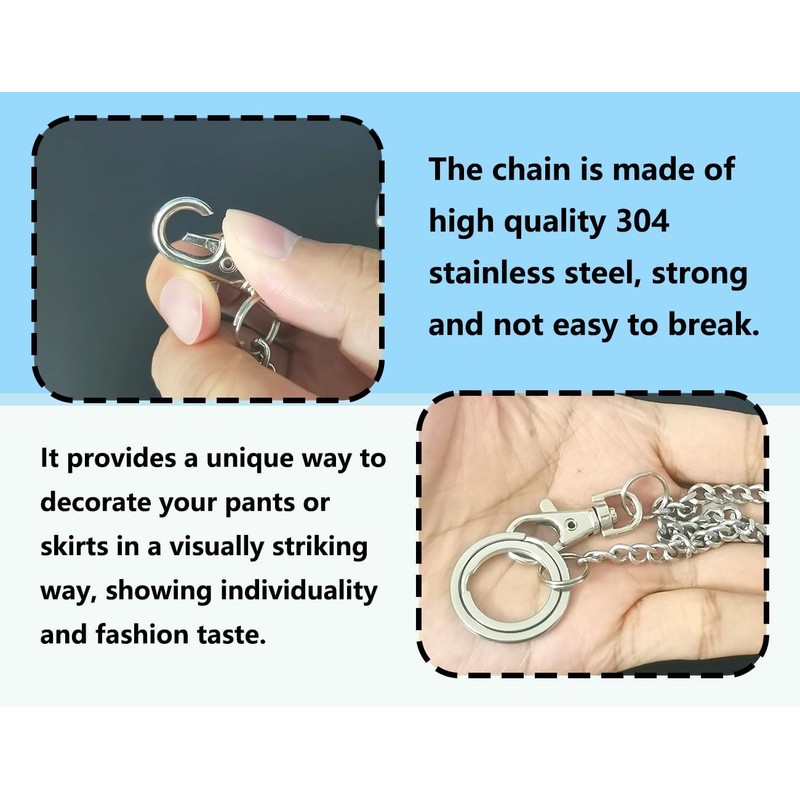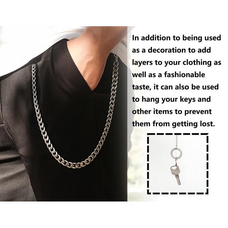 - [40CM LONG CHAIN DESIGN]:The length of this wallet chain is 40cm/15.75inch, providing enough length to conveniently attach the wallet to your belt, pants or bag. It protects your wallet from the risk of loss or theft and provides convenient portability.