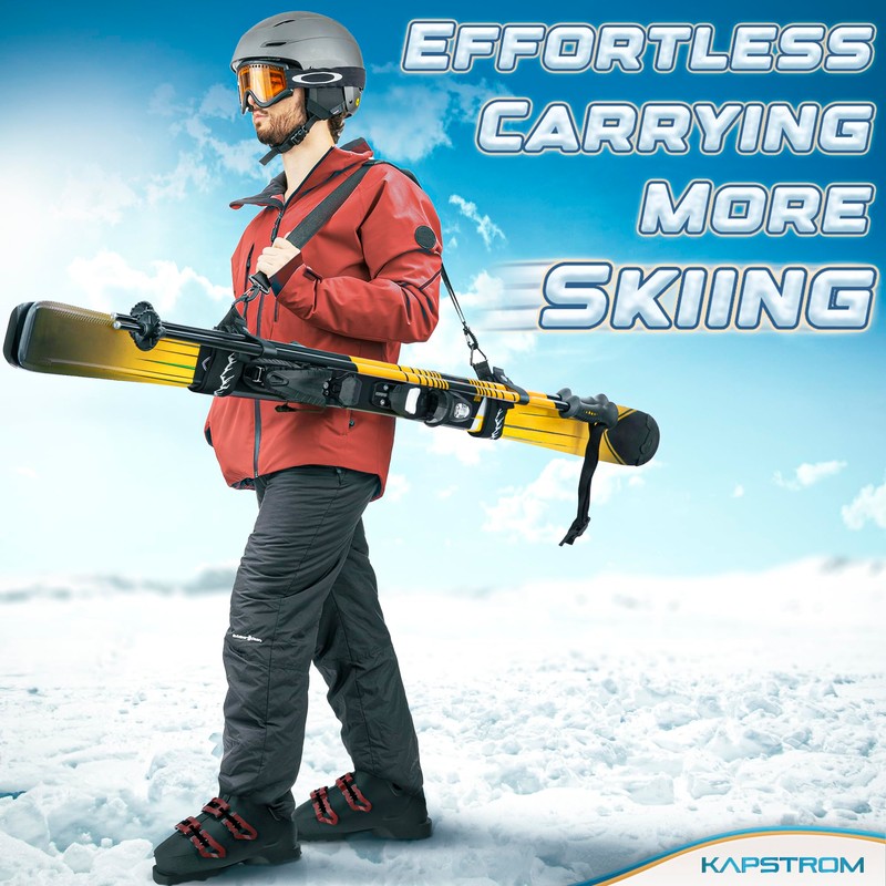 Kapstrom - Ski Straps & Pole Carrier - Black, 2 Pack - Heavy-Duty with Adjustable Strap Length & Cushioned Shoulder Sling - Designed for Kids & Adults to Carry Skis & Poles with Ease