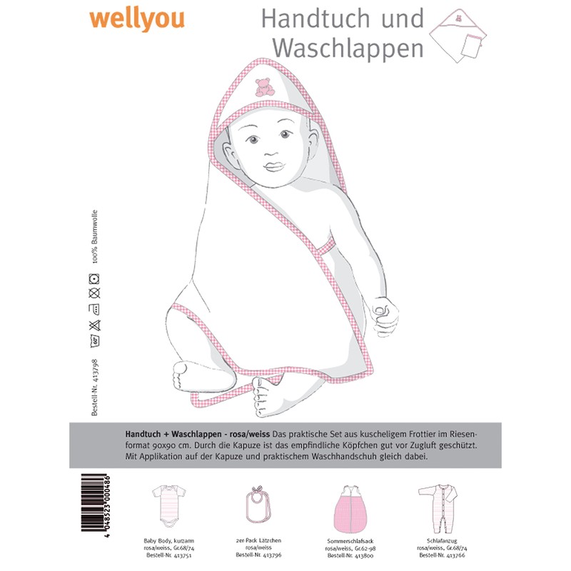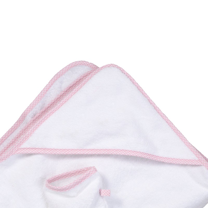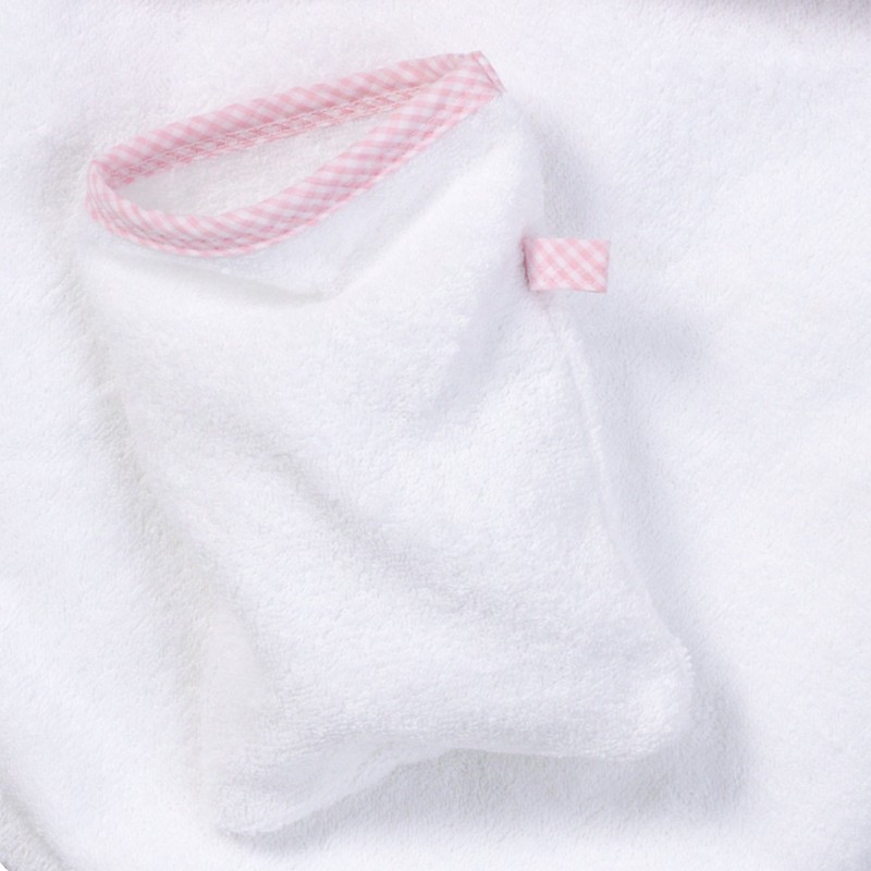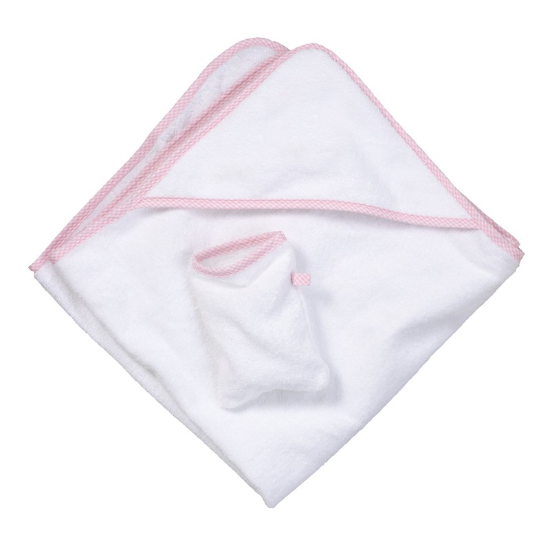 Kapuzen-Badetuch + Waschhandschuh rosa/weiss-Vichy Karo