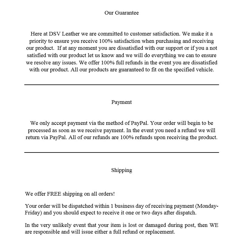 Please read our policy carefully before making a purchase.