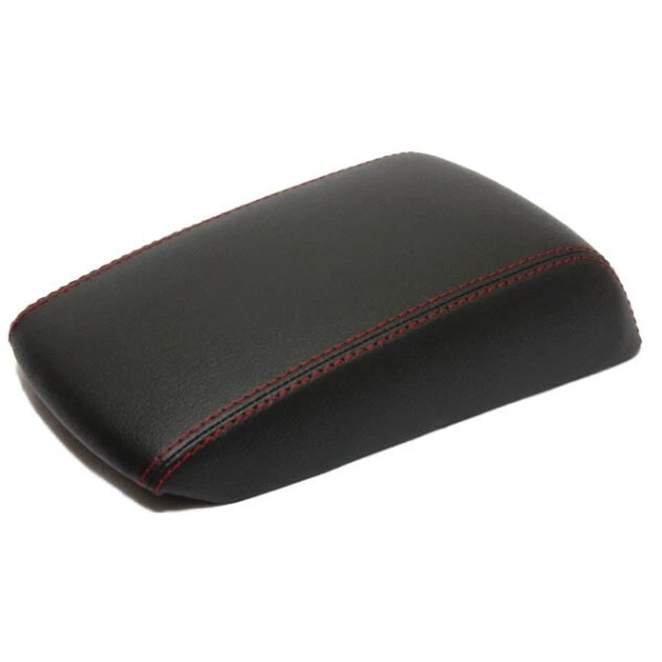 Kar Designers Fits 03-08 Mazda 3 Real Leather Center Console Lid Armrest Cover w/Red Stitch