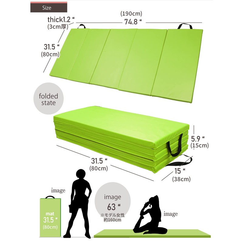 - Type : 5-stage folding, Dimensions : 75"x31"x1.2", Weight : 4.4Pounds