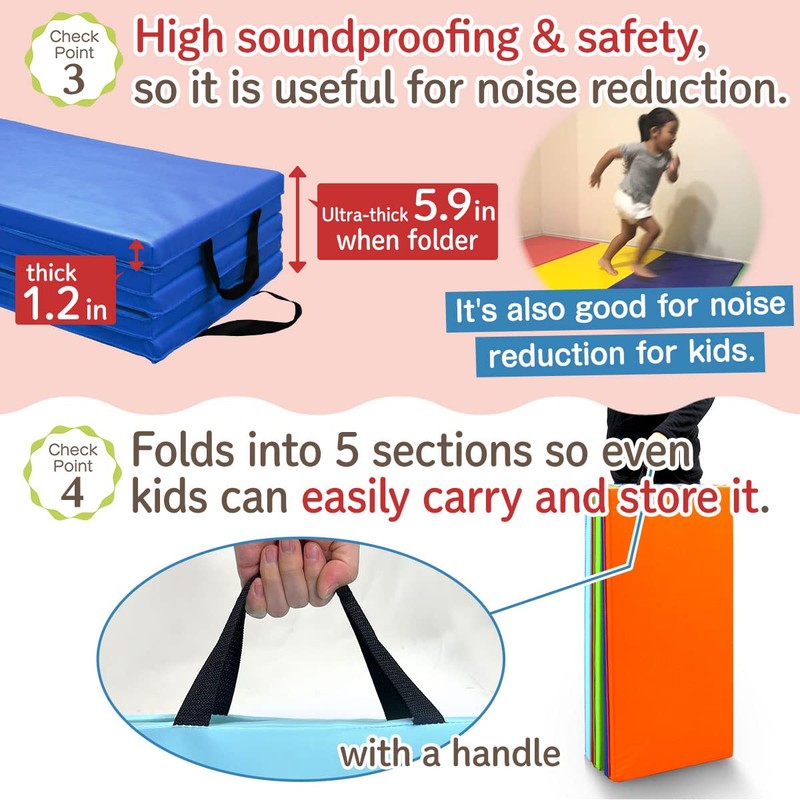 - This mat can be folded into five pieces, making it lightweight, compact, and easy to carry despite its wide size.
