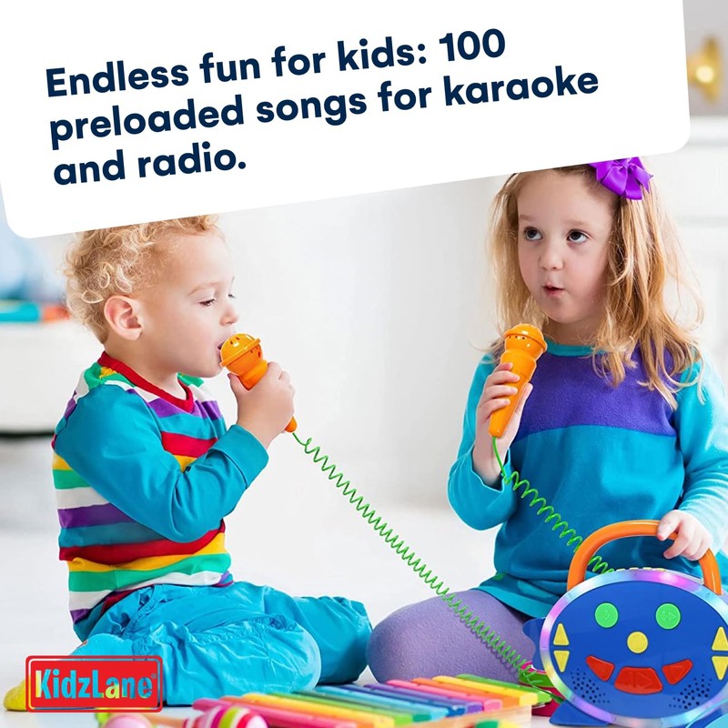 - 100 PRE-LOADED SONGS: No need to search for songs, this karaoke machine for kids has 100 pre-loaded songs and nursery rhymes. With toddler radio and karaoke machine, let the family fun begin!
