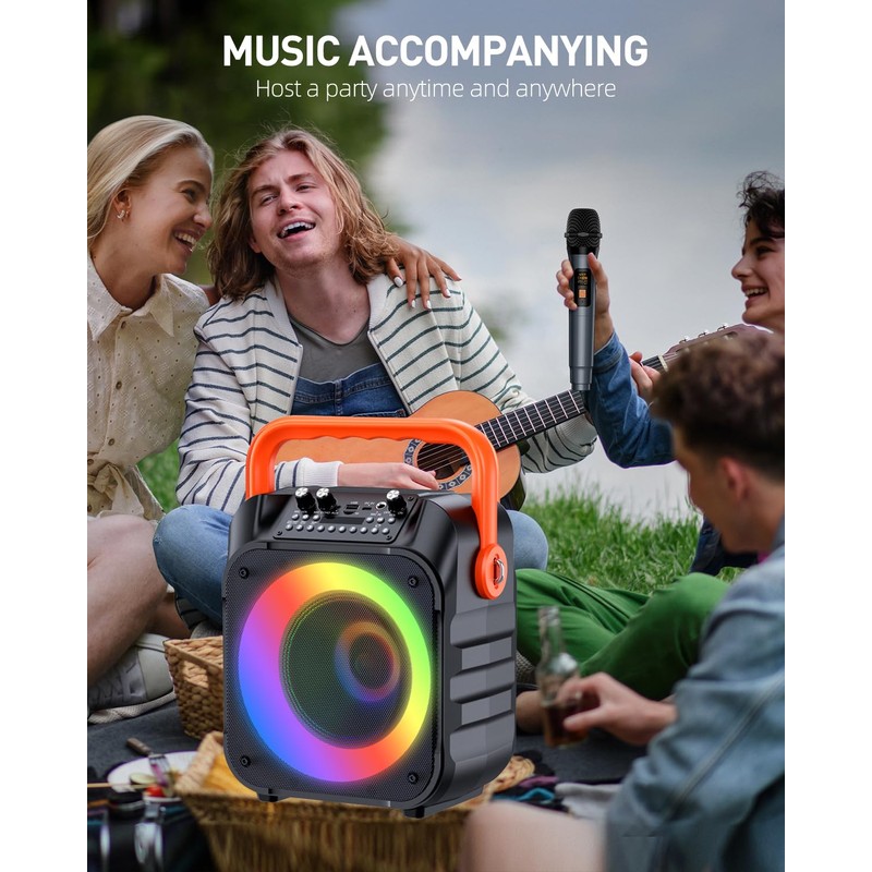 • 【Unmatched Sound Quality】The karaoke machine is equipped with a 6.5-inch full frequency speaker, and adopts advanced high and low bass separation technology for crystal-clearer sound, strongeer bass, more moderate volume and and eliminate all the noise. Karaoke microphone doesn't distort the audio even at higher volumes, bringing stunning music and a wonderful atmosphere to your party.