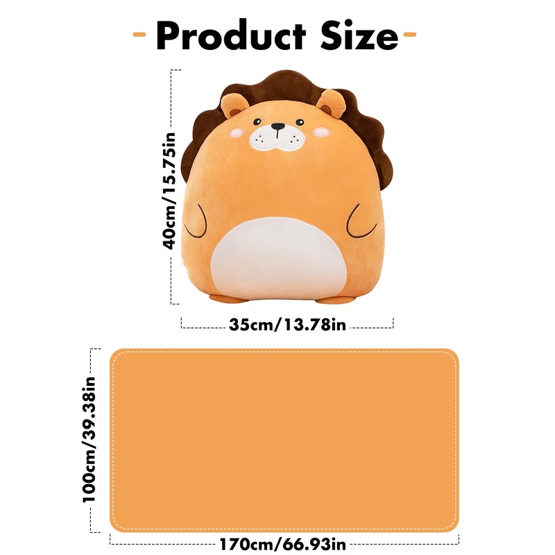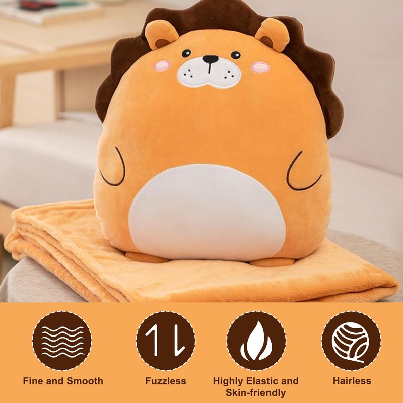 KARAZZO Cute Throw Pillow Plush Toy Stuffed Animal Soft Plushie Doll Gifts Kids Plush Pillows with Blanket (Lion)