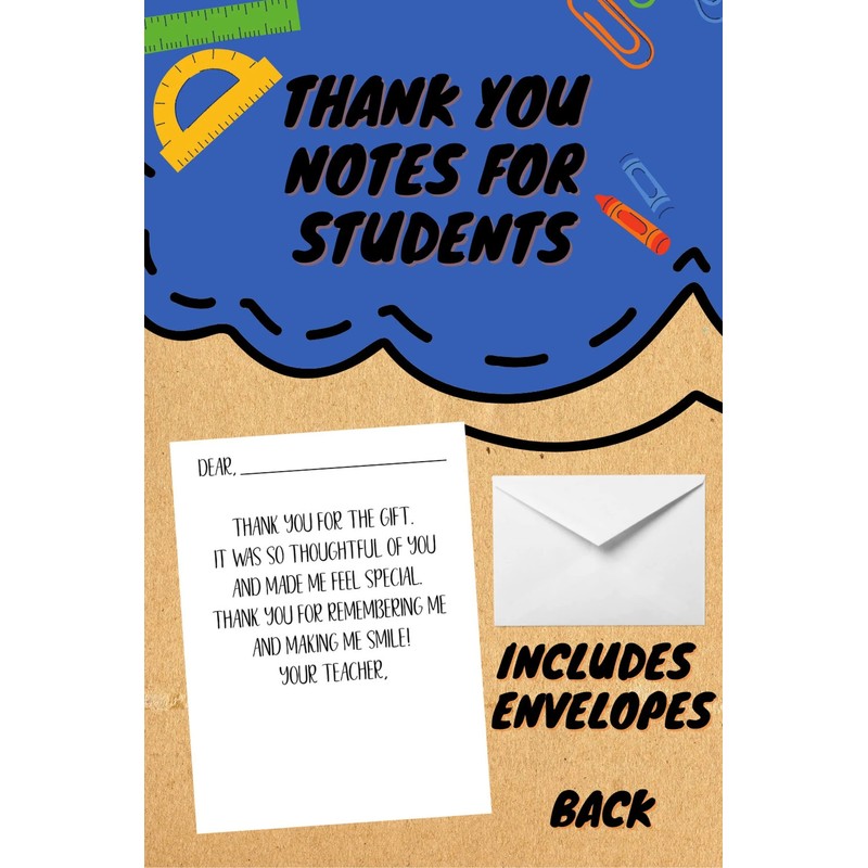 Kards by Kaylee Flat Thank You Note Cards from Teacher with Envelopes-