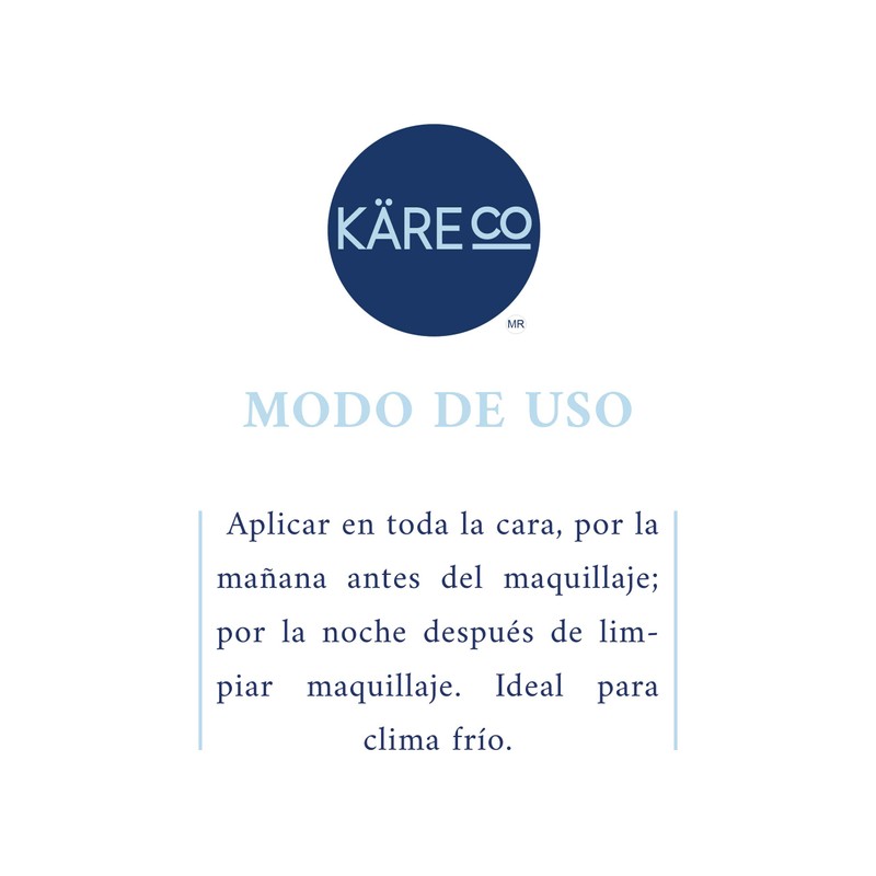 - NUTRITIVA: Crema Kare co antiedad principalmente nutritiva, revitalizante, rica en proteínas, vitaminas y minerales por lo que es una crema muy efectiva en evitar el envejecimiento. Para piel seca o piel grasa, se recomienda utilizar después de la limpieza facial.
