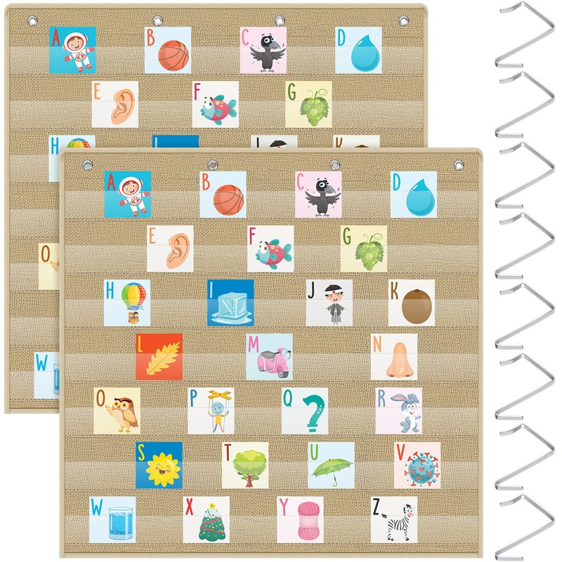 - Set Includes: 2 pocket charts with 4 sturdy metal cable loops, equipped with 8 hooks, measuring about 28 x 28 inches/ 71 x 71 cm, suitable for hanging on walls, doors, whiteboards or most standard chart stands; It also fits on an upright chart frame for easy portability