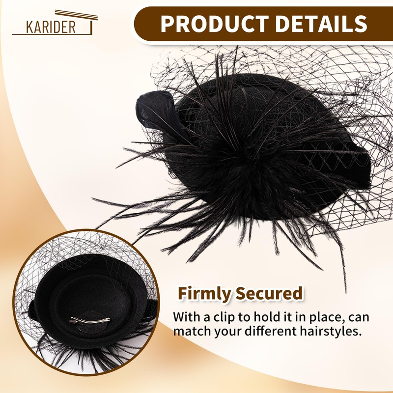 - đ€ăDelicate DesignăThis fascinators hats for women is a great alternative to a traditional hat, designed with Veil, Feather headpiece and hair clip for your need, which is super easy to put on your head and you can adjust it to any effect you want. The fascinators is reversible and removable on the headband, you can free combination of them, and it is easy to wear with a comfortable headband or the hair clip to secure to the hair.