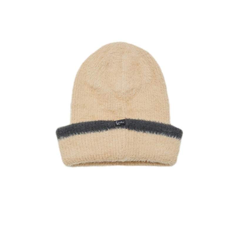 Karl Kani Signature Fluffy Beanie, Sand/Black