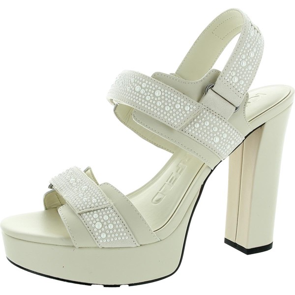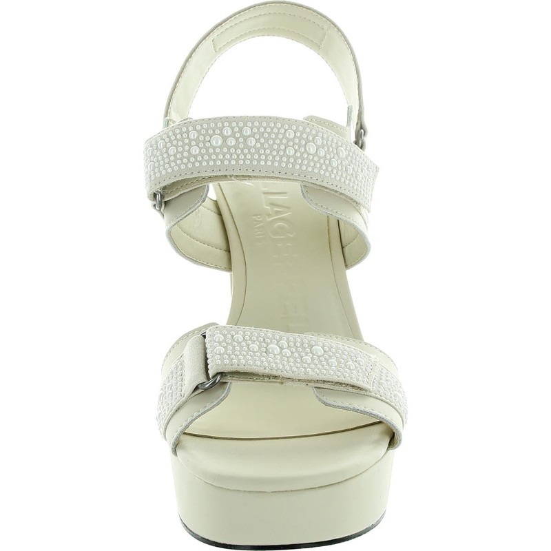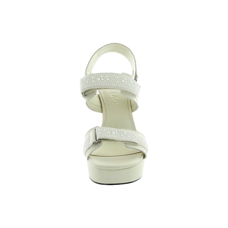 Karl Lagerfeld Paris Women's Alessia Pearl Slingback Platform Sandal Ankle Boot, Warm Mist/White, 8.5