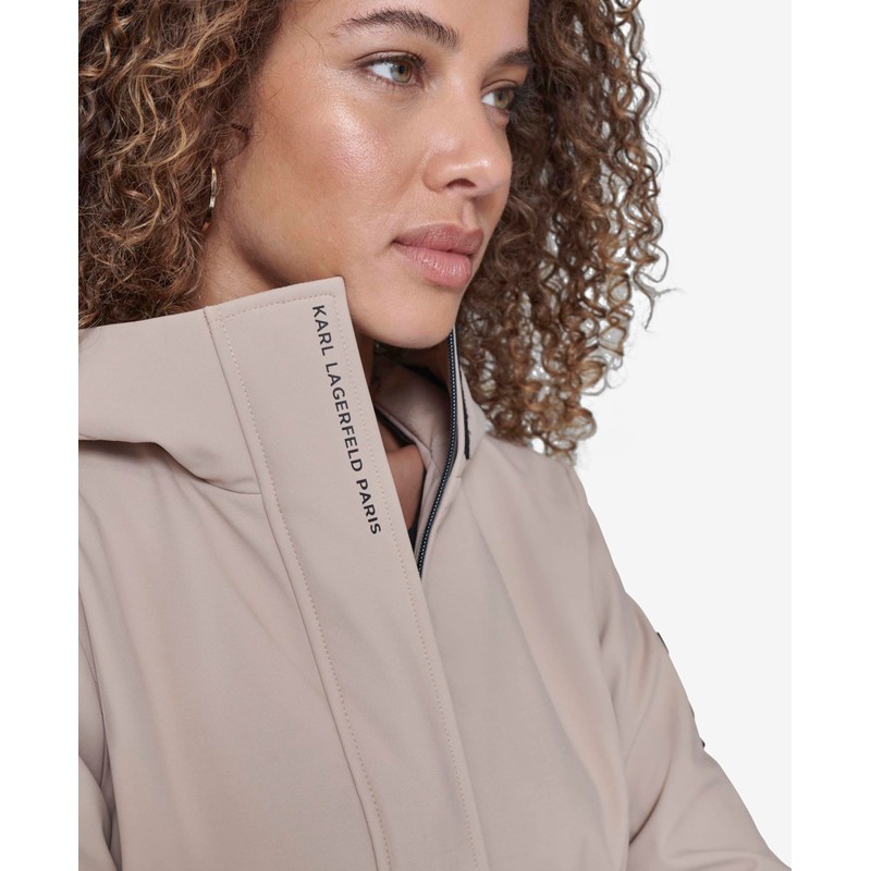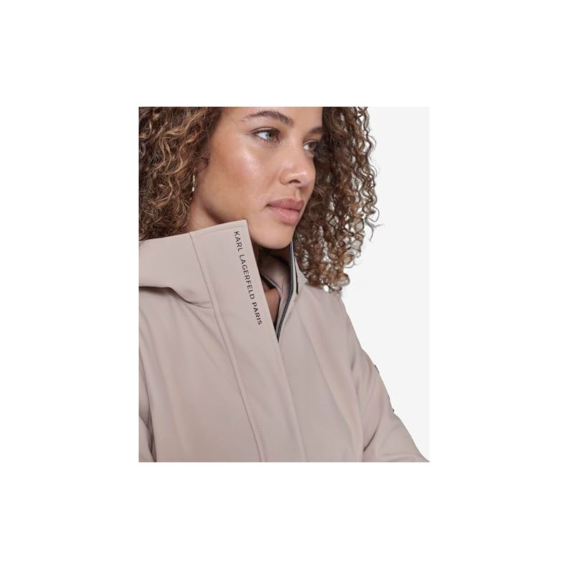 Karl Lagerfeld Paris Women's Bonded Tech Rain Wear Anorak, Khaki