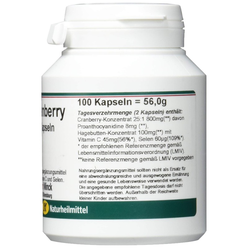 - 1 capsule contains: 400 mg cranberry concentrate 25: 1, 50 mg rose hip concentrate. To 45% vitamin C, 30 μg selenium