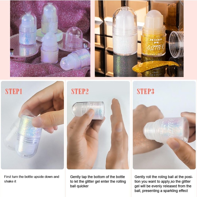 - 🌺【GLANZ-FORMEL】: Roll-on cremiger Glitzer Gel mit schimmerndem Perlglanzeffekt für strahlende Akzente auf Gesicht, Körper und Haare.