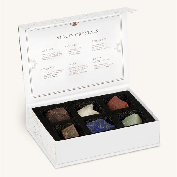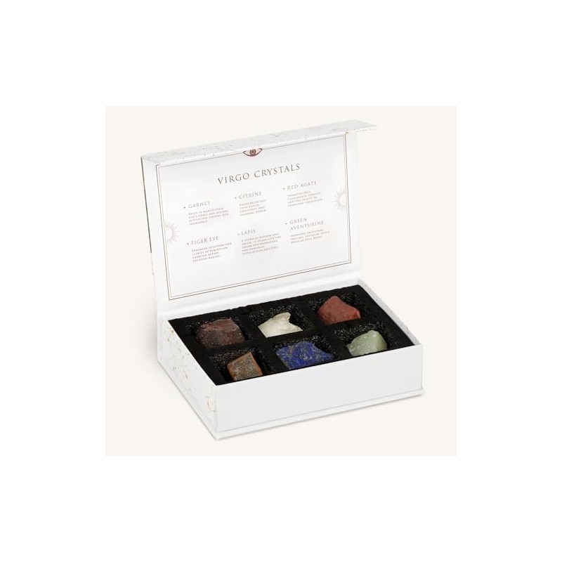 With an eye for detail and an aptitude for hard work, Virgo is always offering a helping hand. An Earth sign, these zodiac natives are grounded, loyal, and intelligent. Karma and Luck made the “Humble Altruist Virgo Zodiac Crystal Box” to strengthen the virgin’s magnetic qualities. Red Agate, Garnet, and Tiger’s Eye enhance Virgo’s bold and brave nature, Citrine and Green Aventurine promote a positive attitude, and Lapis Lazuli sparks the air sign’s innate intuition. Show gratitude for the Virgo in your life with this beautiful collection of gemstones.