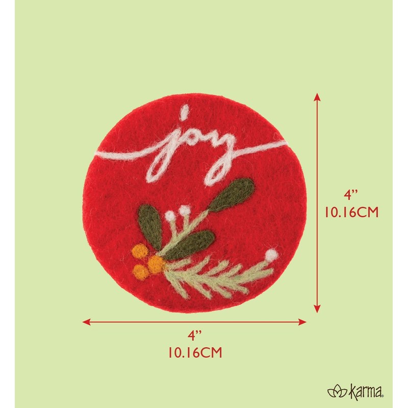 Karma, Handmade Holiday Felt Round Coasters Set of 4 – Wool Coasters for Drinks Water-Resistant - Great Gift for Holidays, Stocking Stuffer and Parties, Nouveau Chrstimas